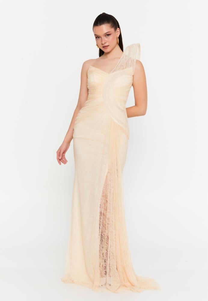 فستان دانتيل طويل بقصة ميرميد لحضور حفلات الزفاف – أنوثة وأناقة