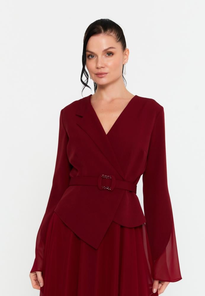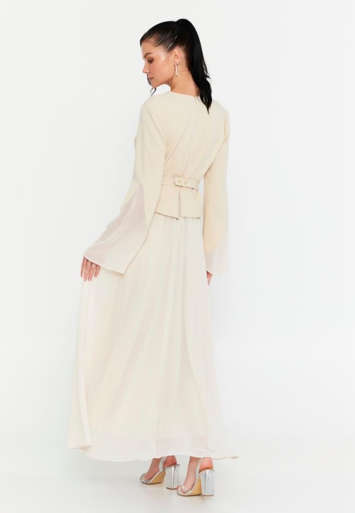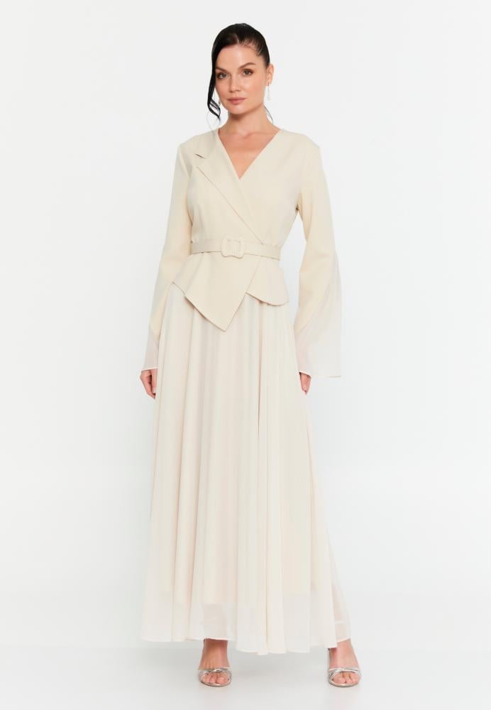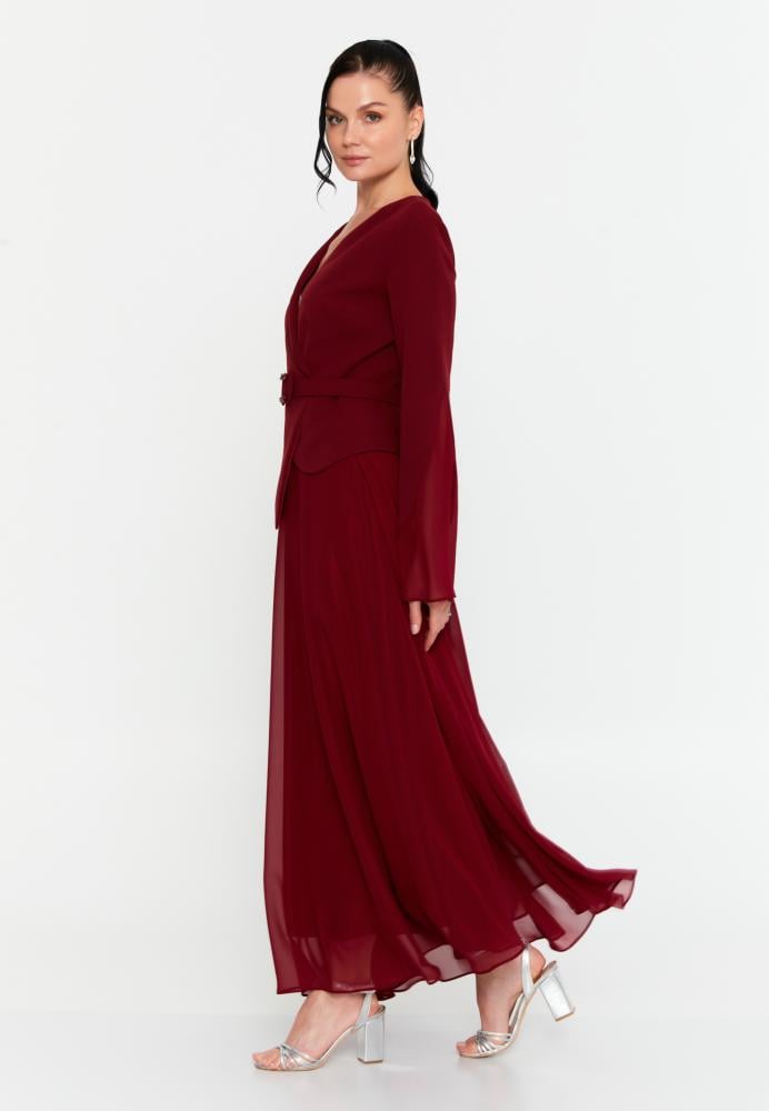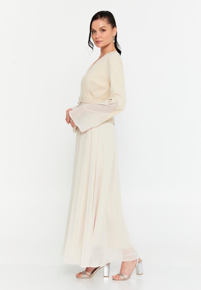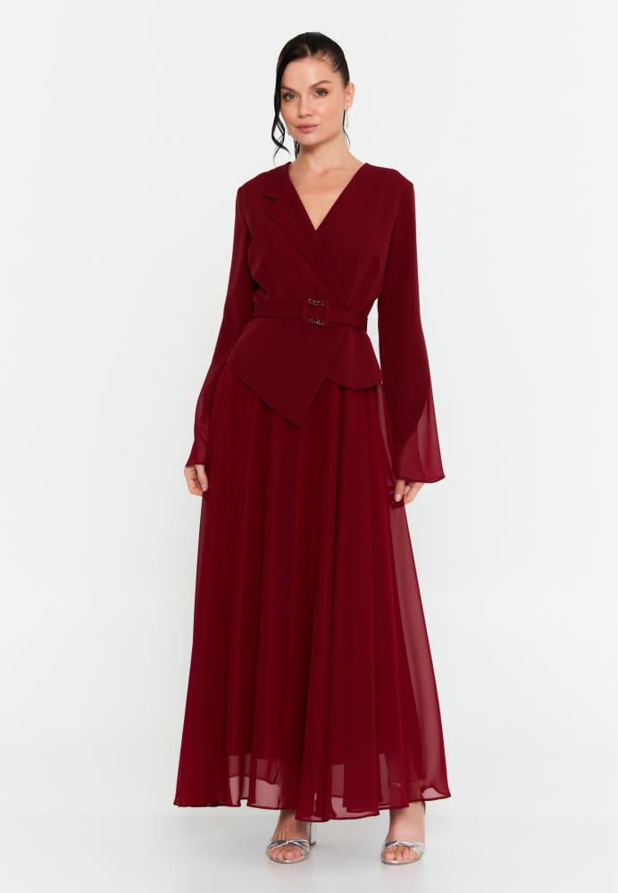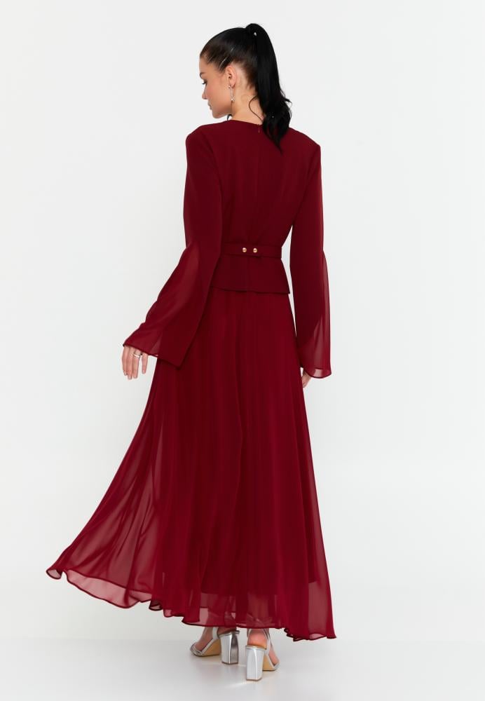 فستان سهرة طويل الأكمام من الشيفون بتصميم عمودي