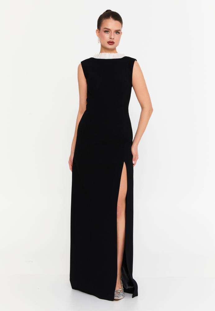 فستان سهرة طويل بقصة عمودية من الكريب – تصميم تركي أنيق لموسم الربيع والصيف