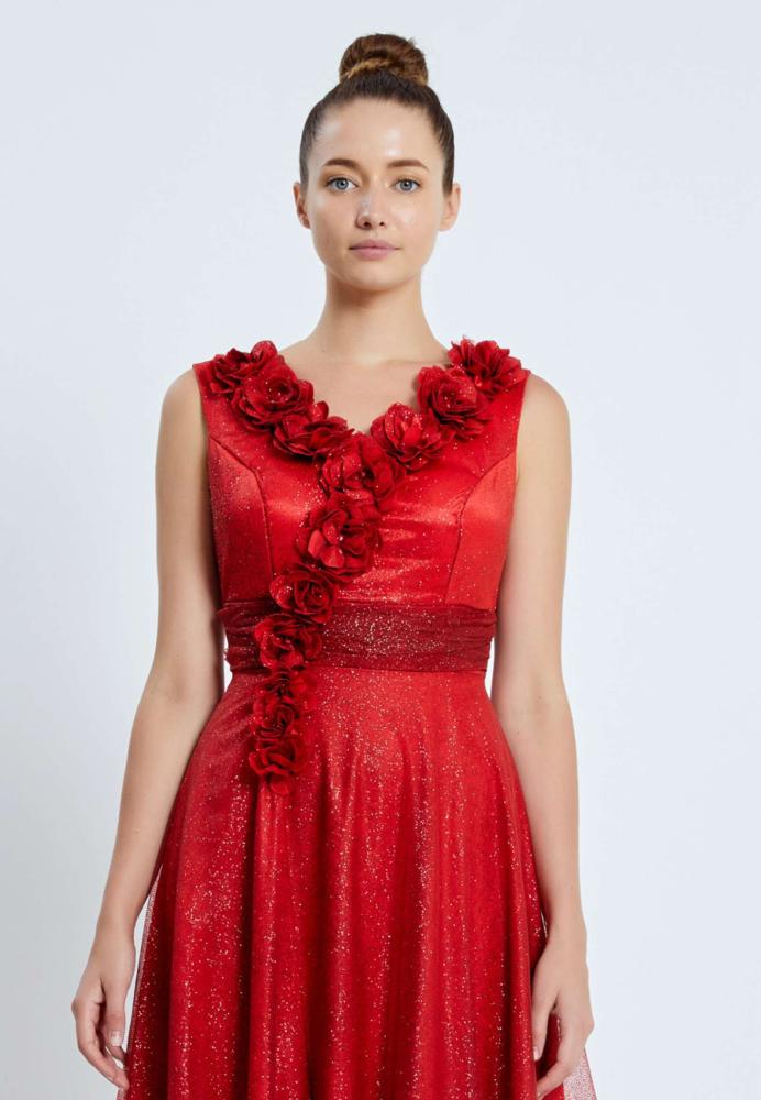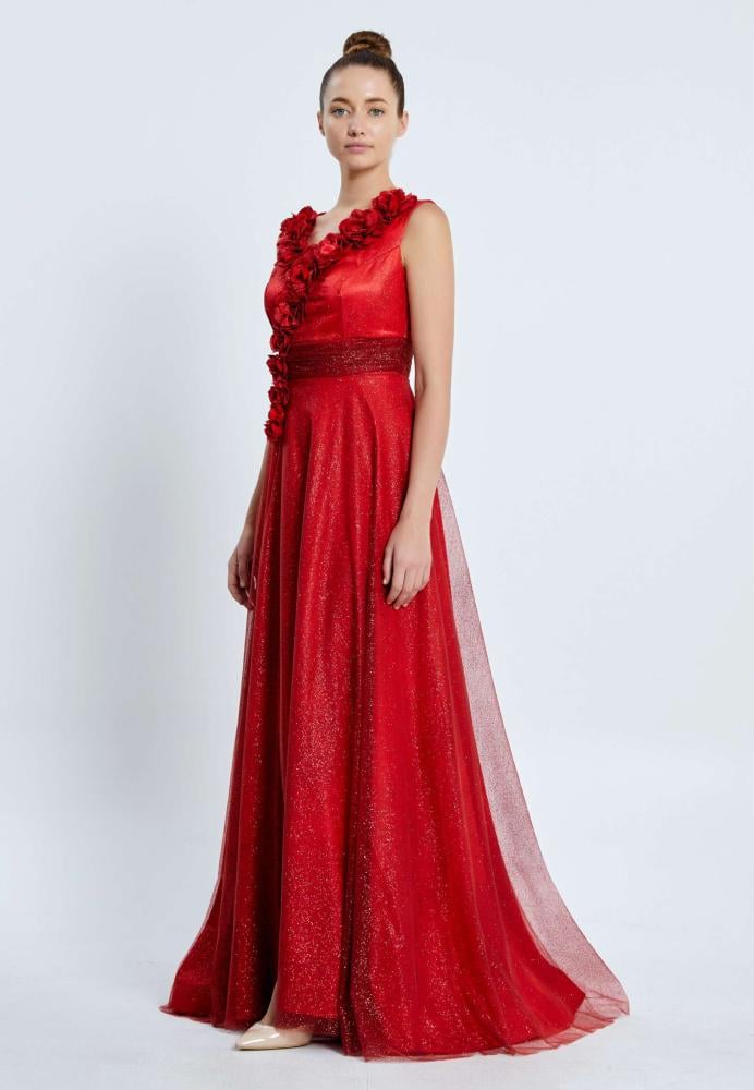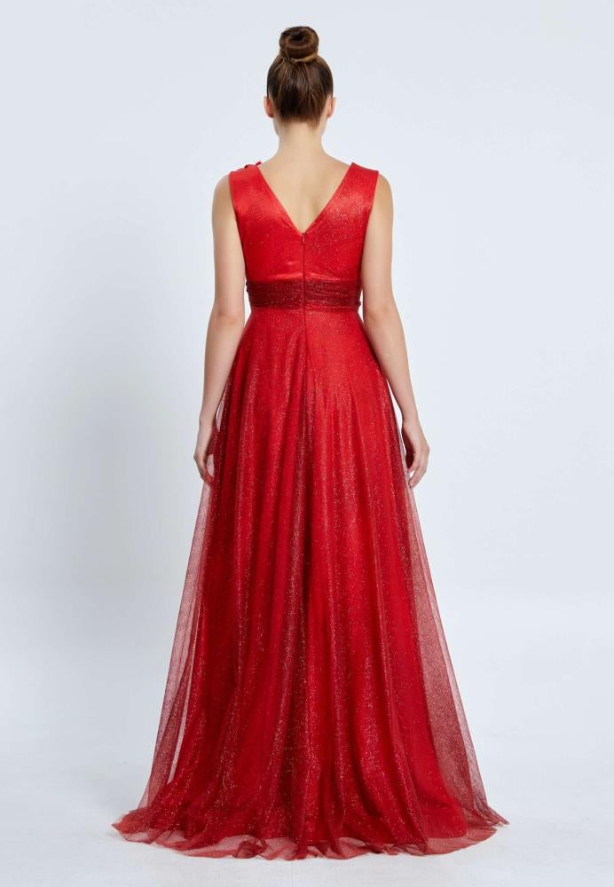 فستان سهرة طويل شيفون بدون أكمام بتصميم A